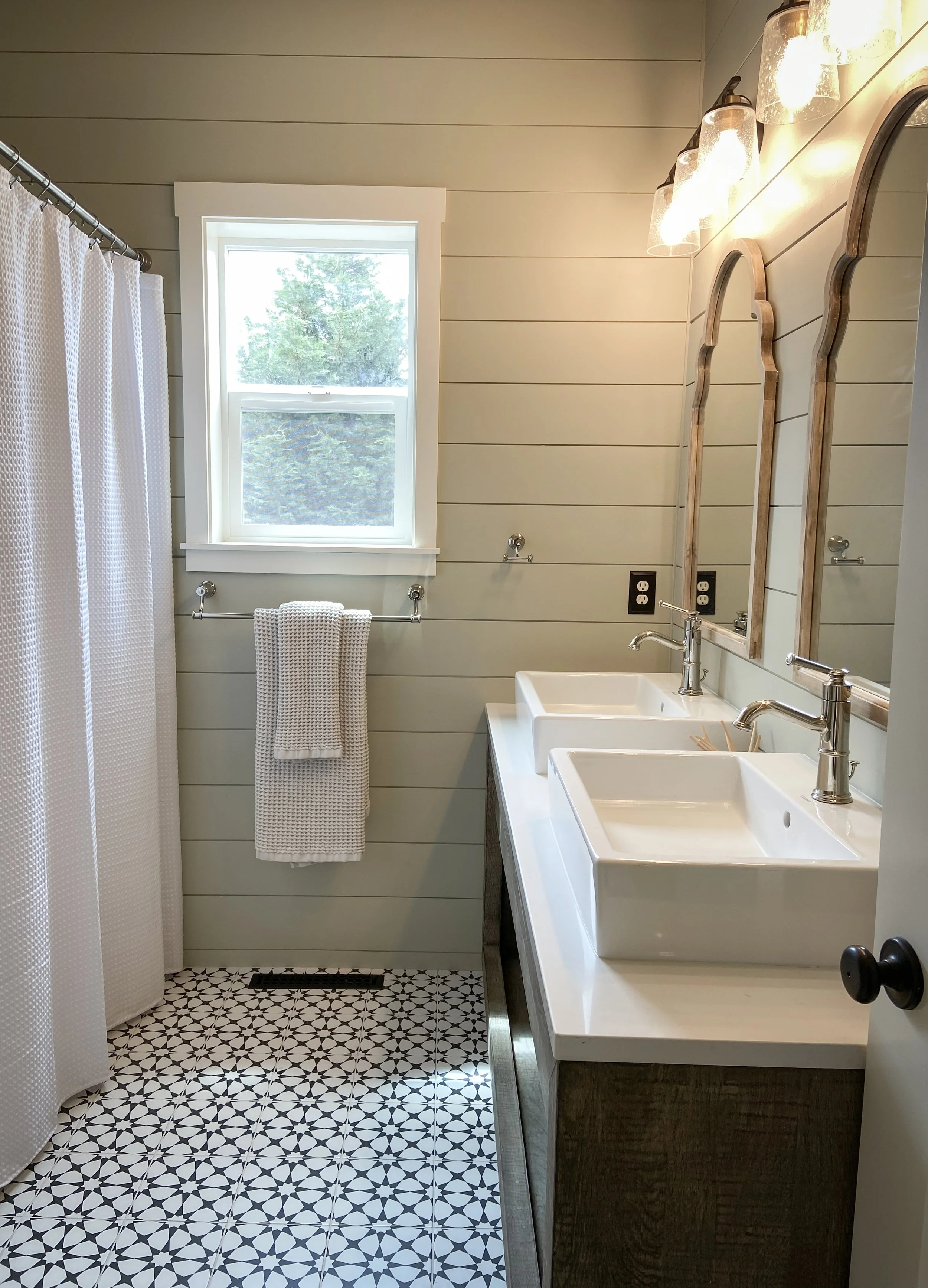 Sat Hari was tasked with designing and installing a cohesive look & flow throughout the client's home, including a remodel of the main bathroom. Working with the existing kitchen cabinets & counters, and a handful of select furniture, Sat Hari updated the paint throughout, sourced new furniture, art, decor, some area rugs, bathroom tile, plumbing fixtures, & textiles, including custom-designed cushions for the dining bench and island stools.